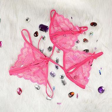 (情趣内衣)羞羞宝贝性感蕾丝透视内衣裤(玫红色)